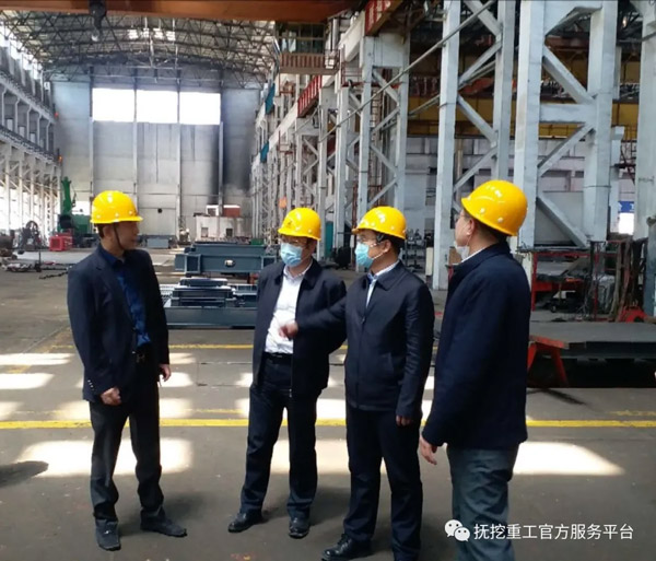 5月13日上午,撫順市市長高鍵帶領順城區區長王景濤及市金融辦、市統計局、市社保局、市工信局等相關部門負責人來到撫挖重工進行視察調研。撫挖重工董事長徐楗元帶領公司管理人員接待了高鍵市長一行。